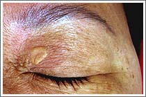 ► 片狀是一般最為常見的黃色瘤,最常出現的區域是上眼皮,在40-50歲的片狀黃色瘤患者,只有一半的比例體內膽固醇的濃度過高。